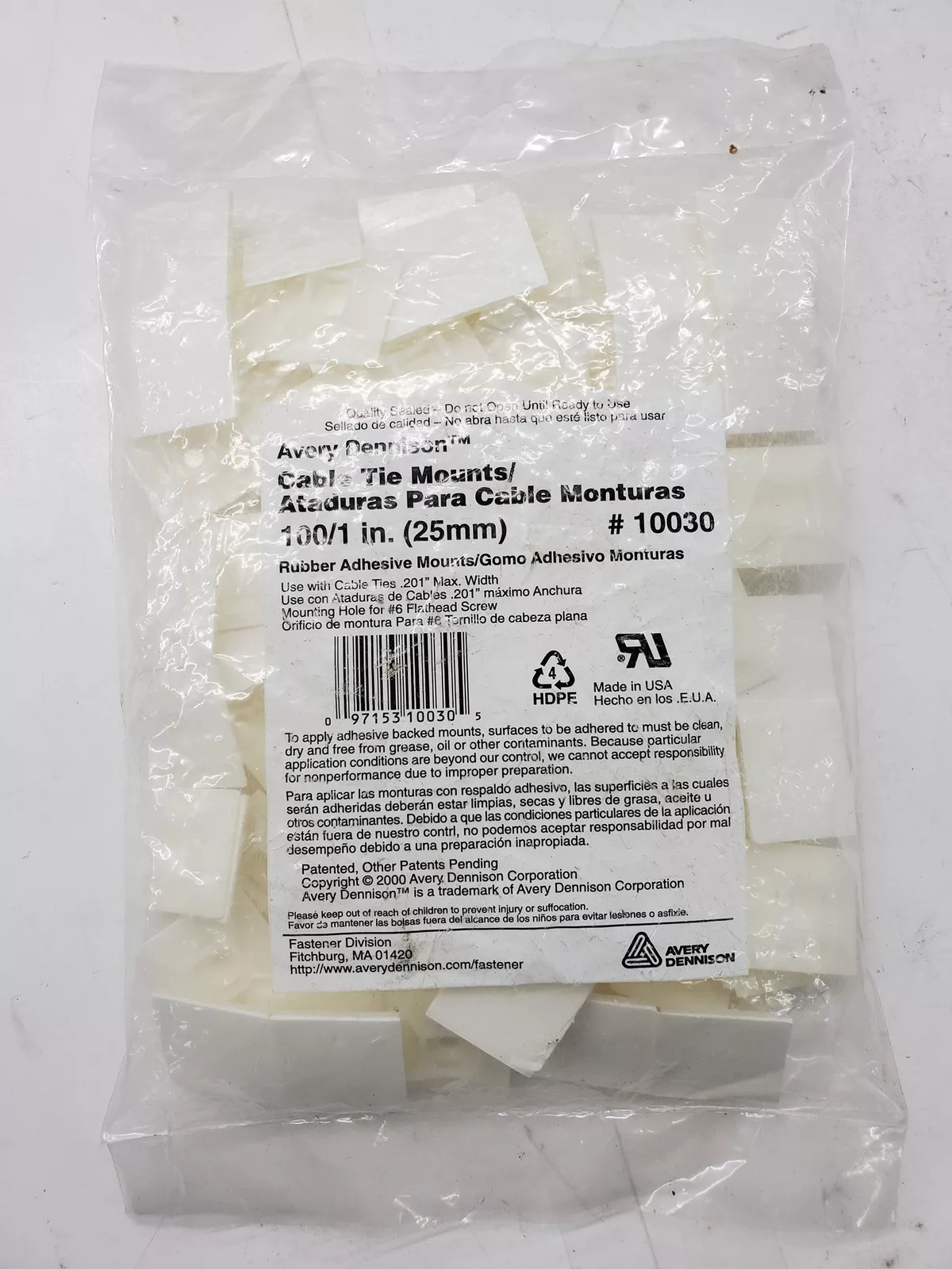 NEW Avery Dennison 10030 100 1 inch Cable Tie Adhesive Mounts