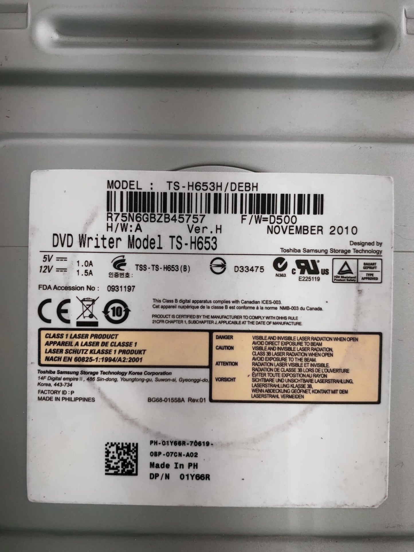 Toshiba SATA TS-H653 DVD-RW 01Y66R VerH